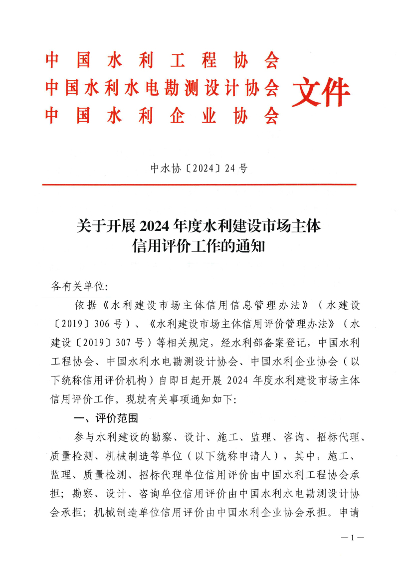 — 关于开展2024年度水利建设市场主体信用评价事情的通知 —